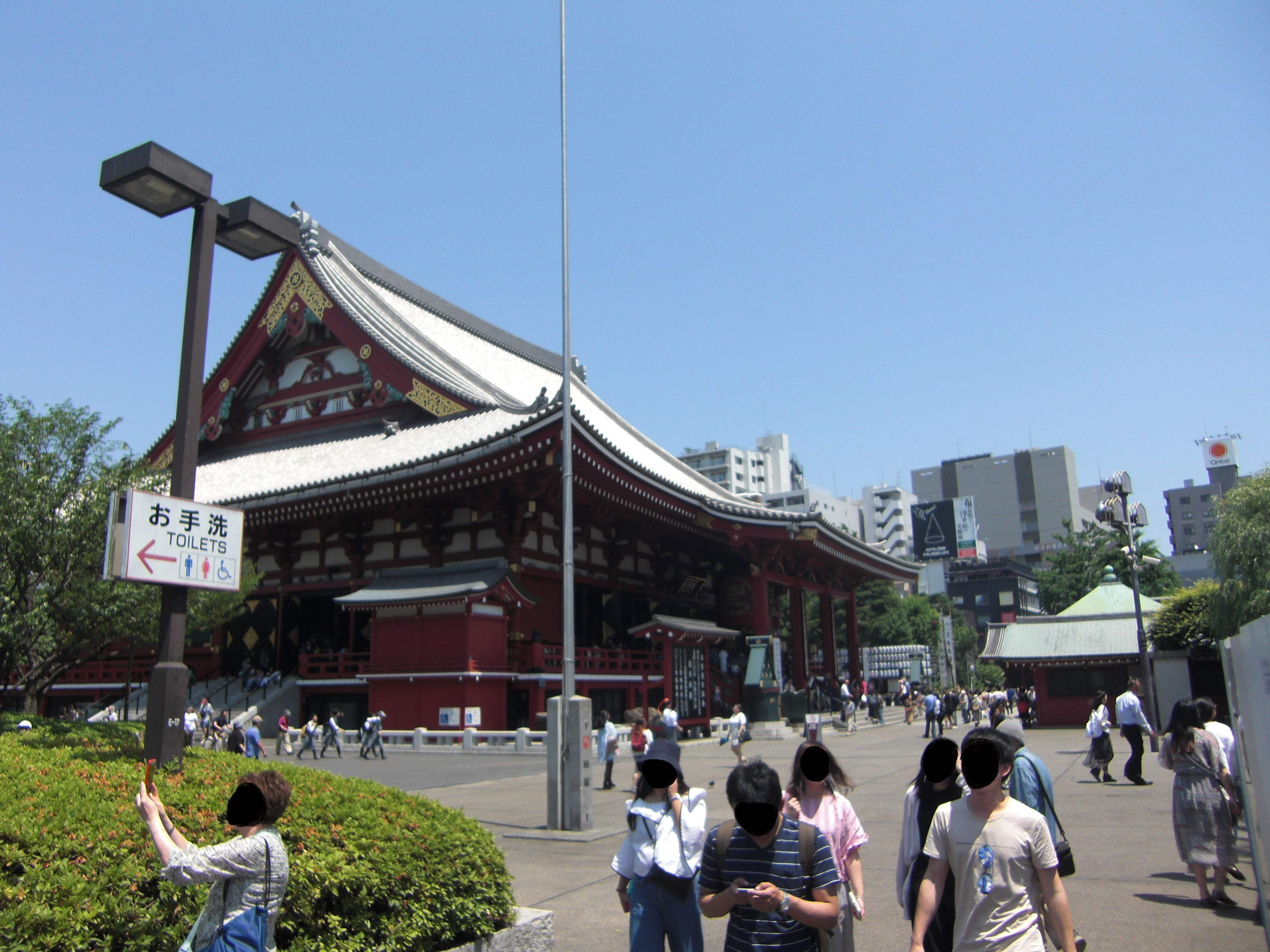 ↑外国人観光客と修学旅行生でごった返しています。次から次へと人がやってきます。きれいな朱色の宝蔵門。